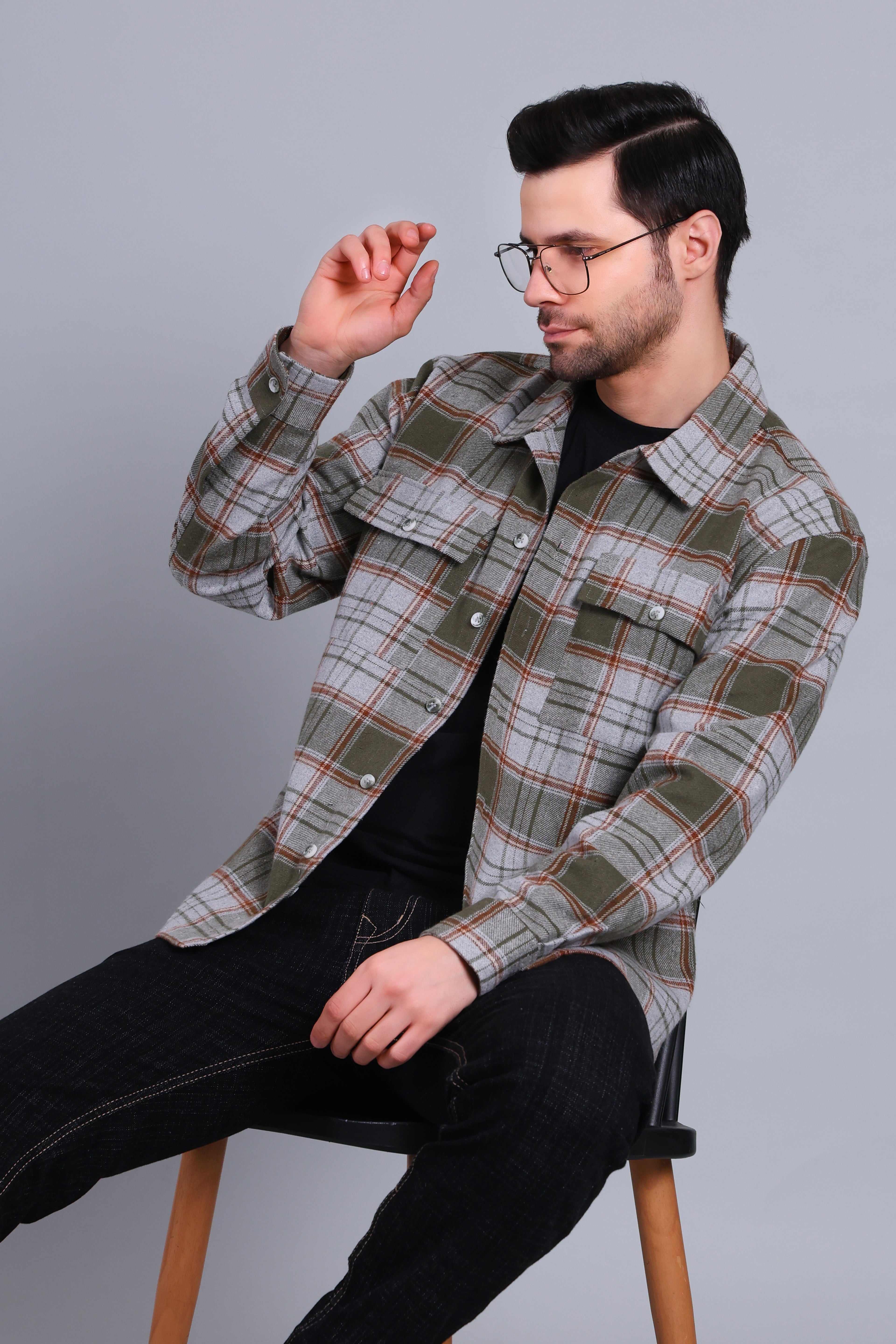 OLIVE GREEN SHACKET OF BRUSHED FABRIC